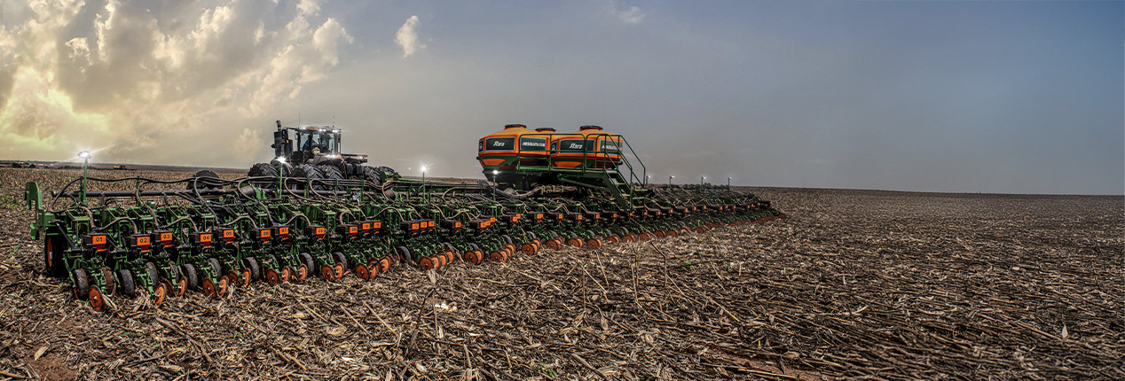 Trata-se de um sistema de semeadura pneumática que proporciona uma cobertura mais uniforme, utilizando o mesmo rastro da pulverização. Garante aos Imperadores 3.0 e 2000 alto rendimento operacional e semeadura homogênea. Deseja receber mais informações sobre outras soluções Stara? Entre em contato conosco.